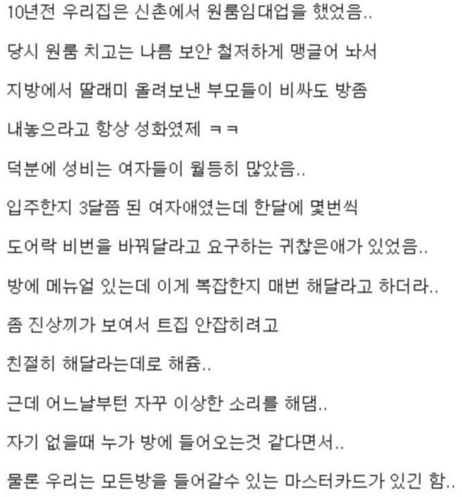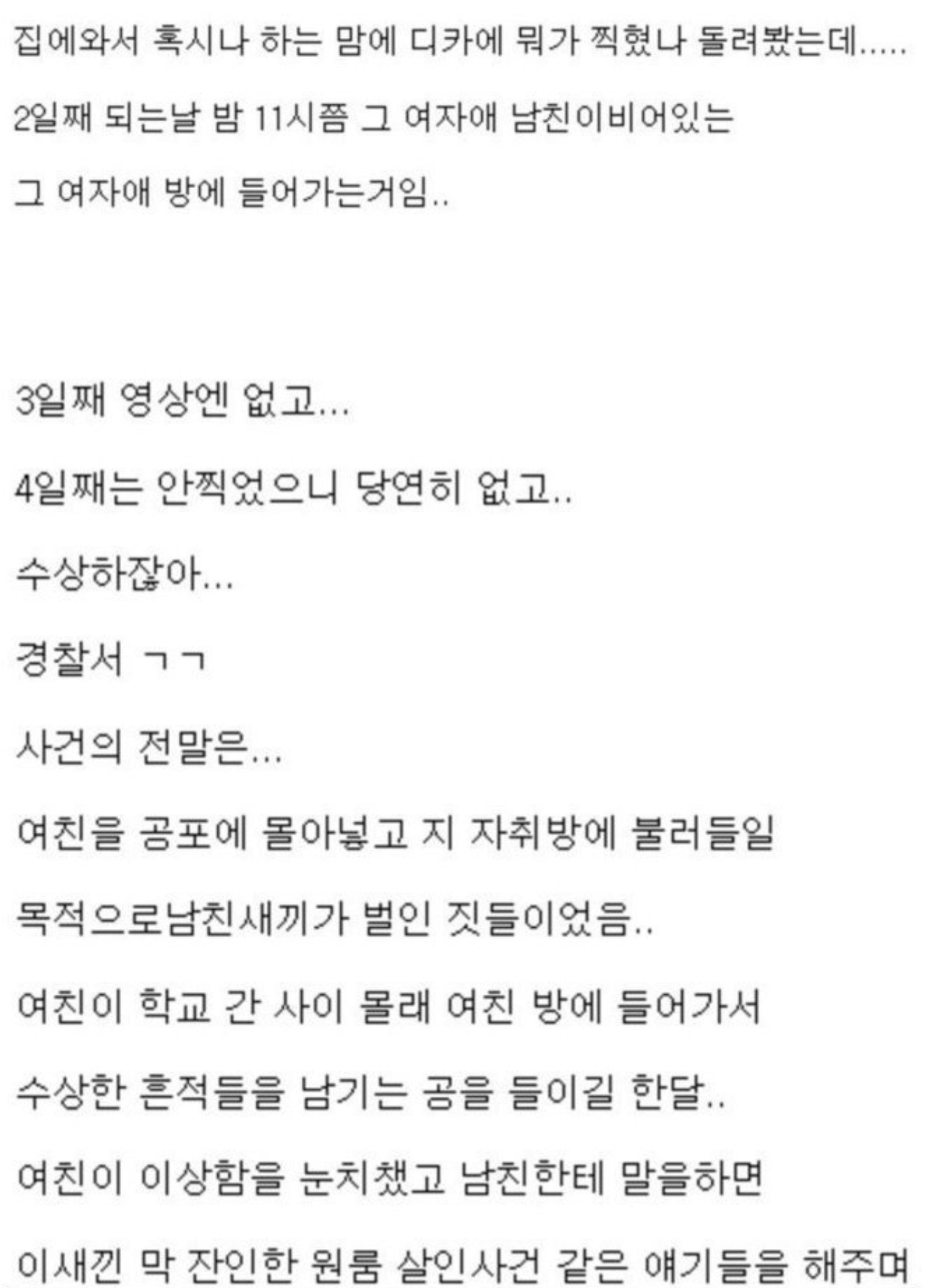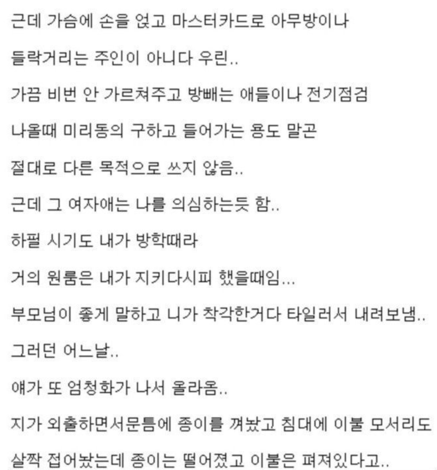 누군가 자기방에 들어온다던 여자애